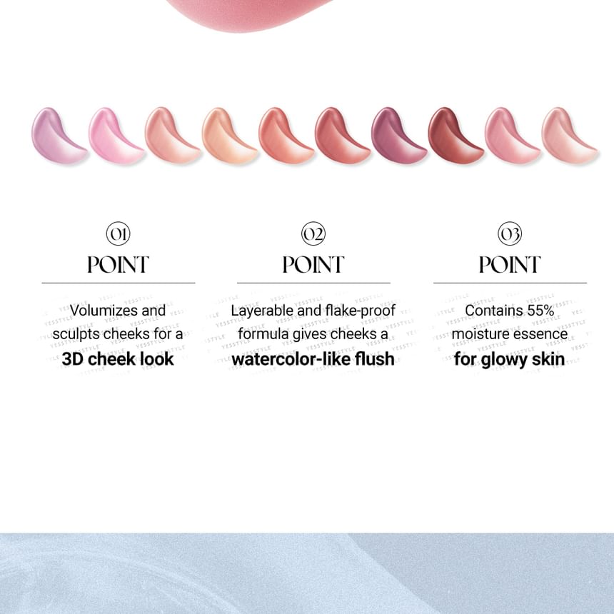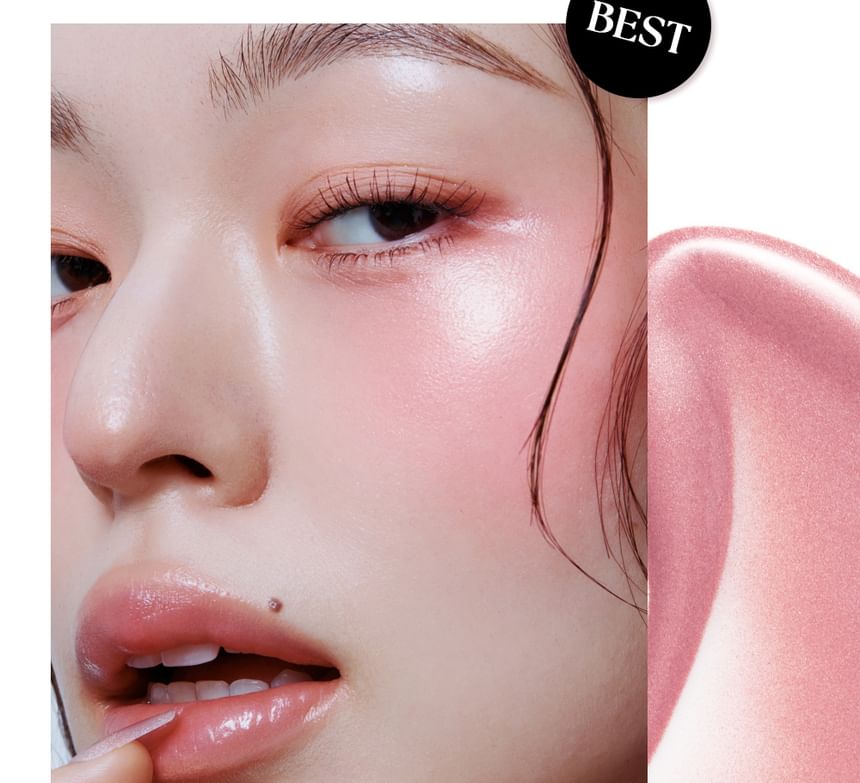 This shimmery liquid blush adds volume and a healthy glow to cheeks.