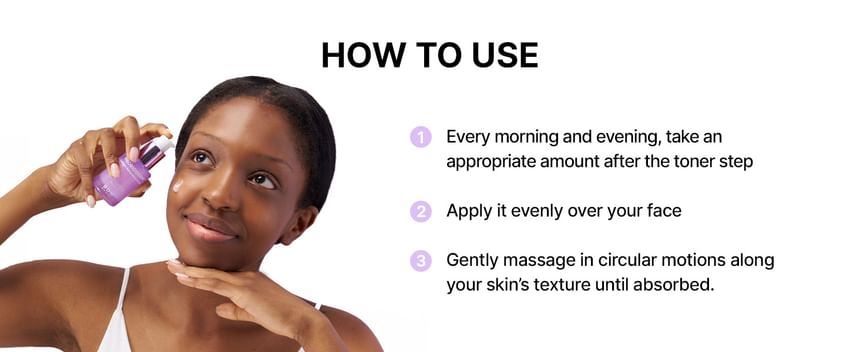 1. After using toner, apply a moderate amount of the product to skin and gently pat to aid absorption.